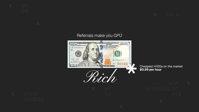 The more you share, the more GPU rich you get. Share your referral link: http:/app.hyperbolic.xyz/refer...…