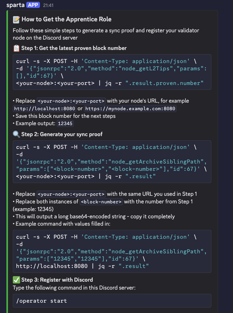 Join the Aztec Discord and go to the "operators | start here" channel