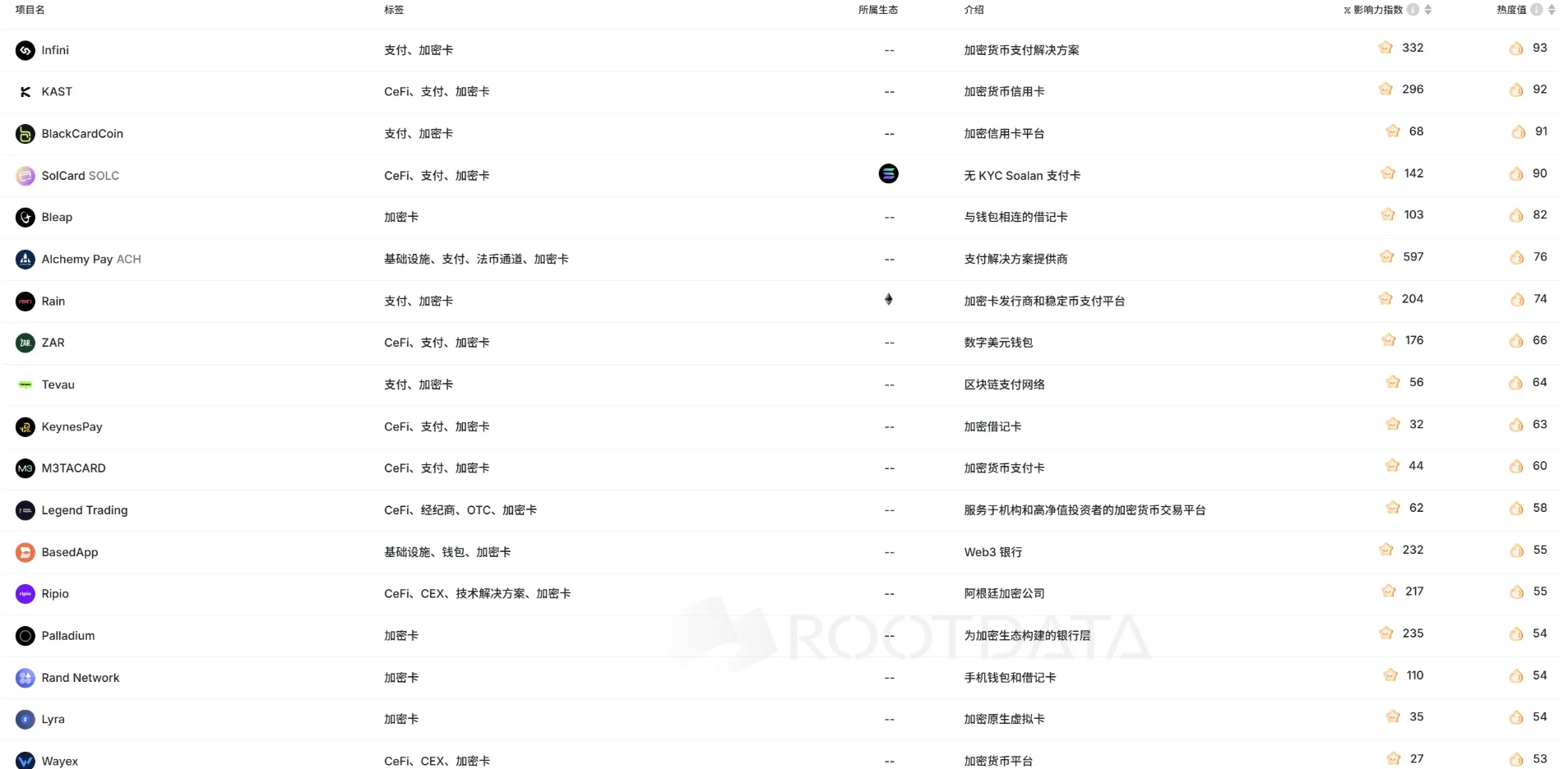 From "ten chains" and "ten platforms", we now progress to the "ten cards era". This race is not just a stage for startups. More and more top players are personally entering the field, with exchanges, wallets, and public chains all eager to occupy a place in this key entry point for on-chain assets moving to offline consumption.