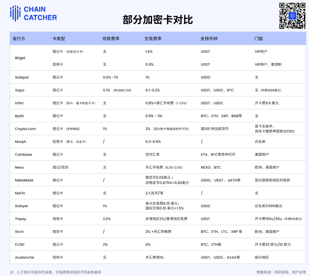 Crypto card products in the market are already diverse. Here's a comparison of some representative projects: