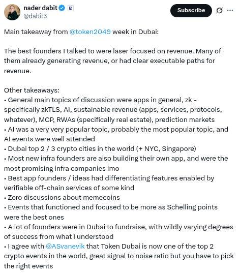 -A bunch of interesting talks and meetups at Token2049 in Dubai