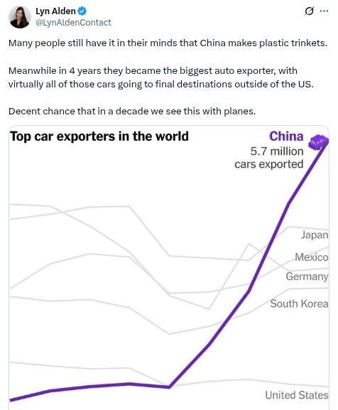 -Ongoing discussion and debate about China and the US and tariffs and manufacturing and etc, especially vis a vis the automotive industry (interesting note is that the number of yearly car purchases in the US is at the same level as it was in 1985), and whether this will lead to more short-term tariff pain and/or a weaker dollar long-term (which would likely be good for crypto) and a host of other downstream effects of the situation, h/t example from @LynAldenContact: