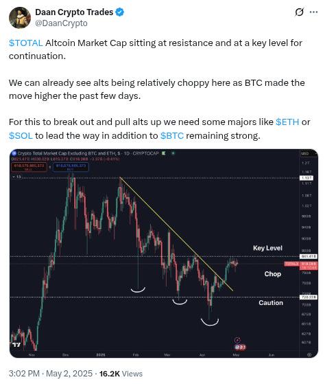 -Total crypto market cap back over $3.00T- the high point of the 2021 bull market- but still 30% below the recent high of $3.90T, and $TOTAL/altcoins are chopping sideways, h/t @DaanCrypto: