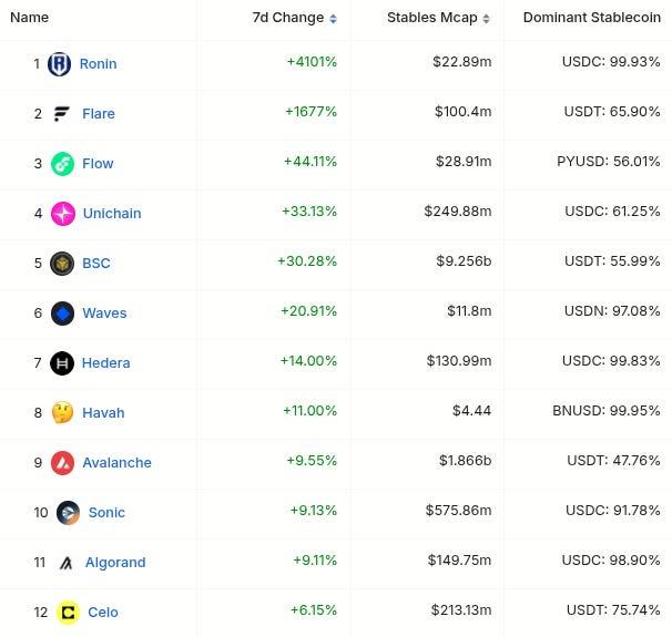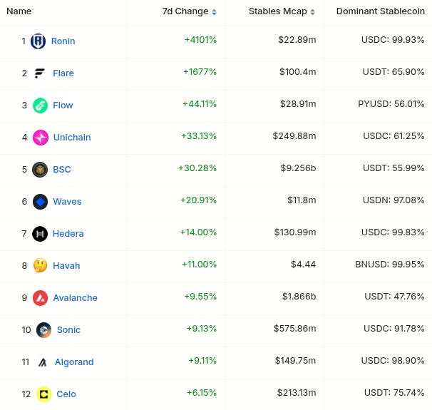 Here’s The Top Chains By 7 Day Stablecoin Inflow % (from @DefiLlama):