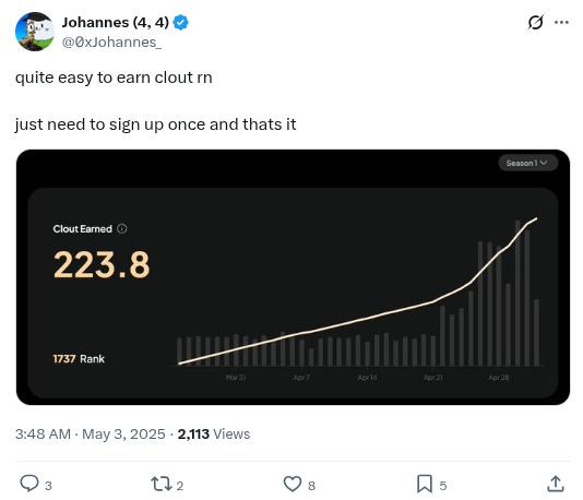 -Reminder that you can sign up for @fantasy_top_ and begin farming ‘Clout’, their new equivalent of Kaito’s ‘Yaps’, as they continue to pivot in a more Kaito-like direction, h/t @0xJohannes_:
