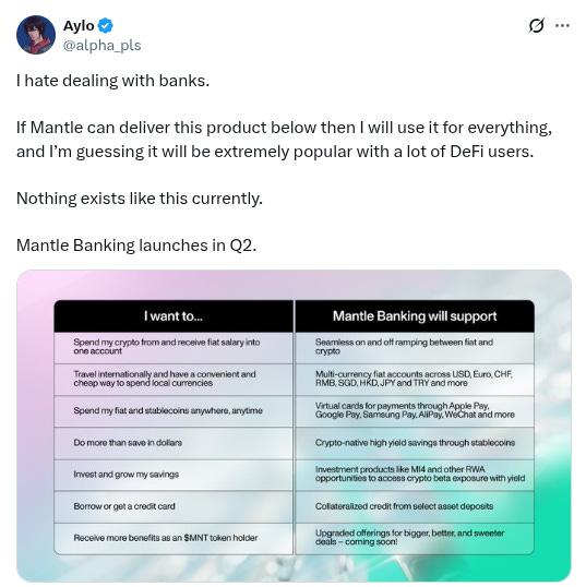 -The EXTREMELY cool new Mantle Banking initiative (see more in tweet from @alpha_pls below!)