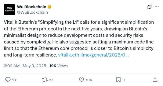 -Update on Vitalik and ETH tech stuff, h/t @WuBlockchain: