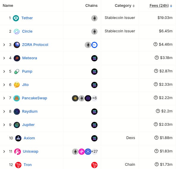 Here’s The Top Entities By 24 Hour Fee Generation (from @DefiLlama):