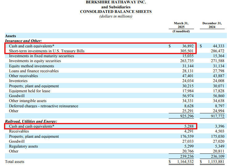They now hold $305.5 BILLION of US Treasury Bills and $36.9 billion of cash in their insurance and other business.