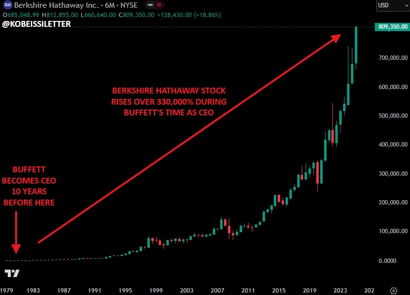 He became CEO of Berkshire Hathaway in 1970 and the stock has returned over +330,000% since then.