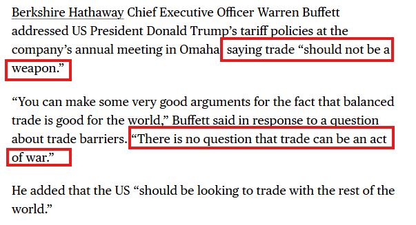 He said trade “should not be a weapon" and “there is no question that trade can be an act of war.”