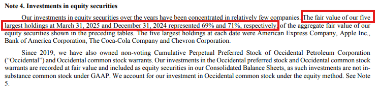 Berkshire noted that the fair value of their 5 largest holdings represented 71% of aggregate fair value of their equity holdings.