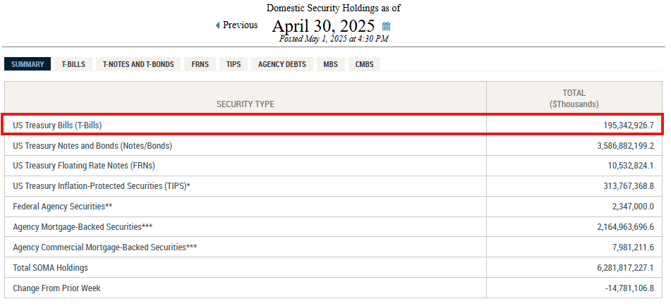 To put this in perspective, the US Federal Reserve currently holds $195.3 billion in US Treasury Bills.
