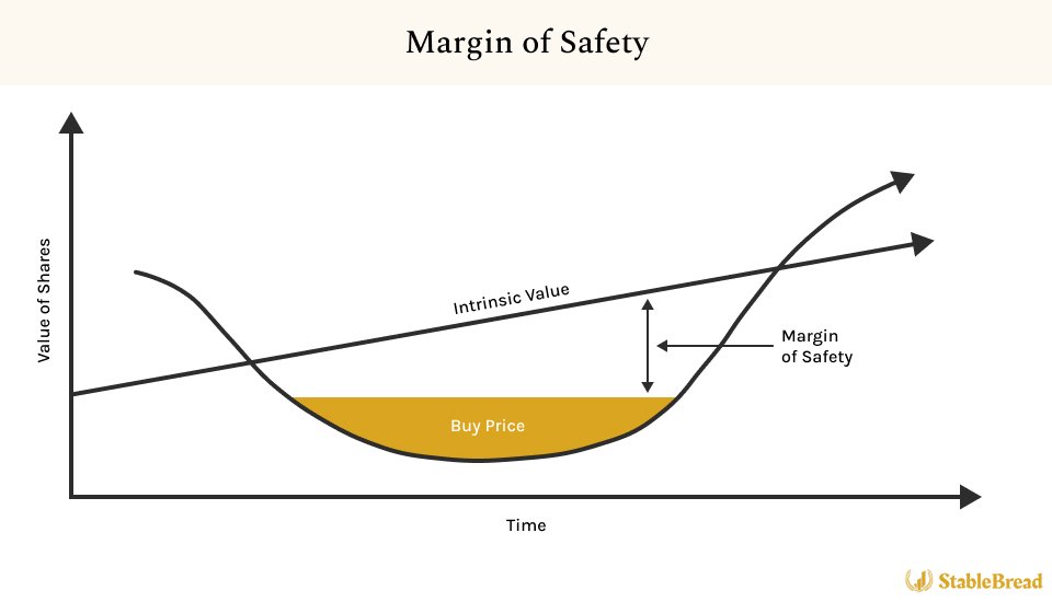The idea is to buy stocks only when the market price is significantly lower than the intrinsic value of the company.