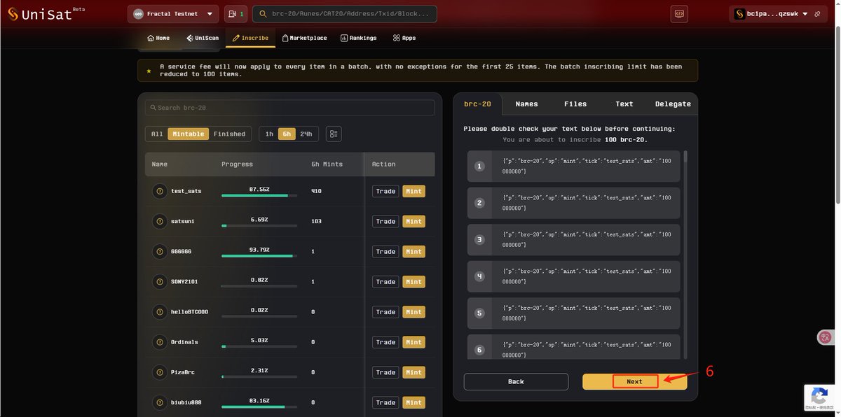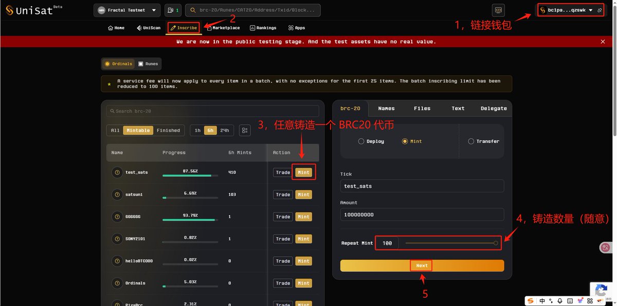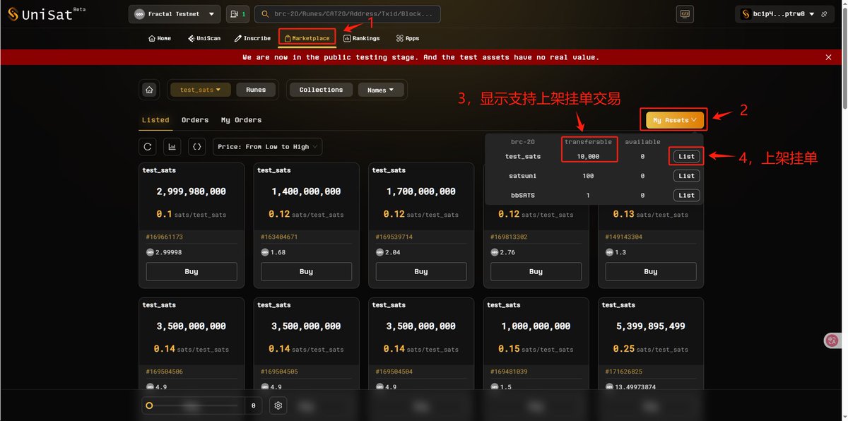 Testnet trading website: fractal-testnet.unisat.io/mark...