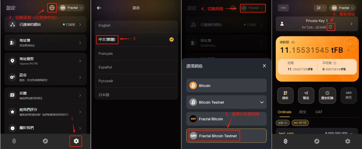 2⃣: Switch the wallet language (now supports Chinese) and switch to the fractal test network