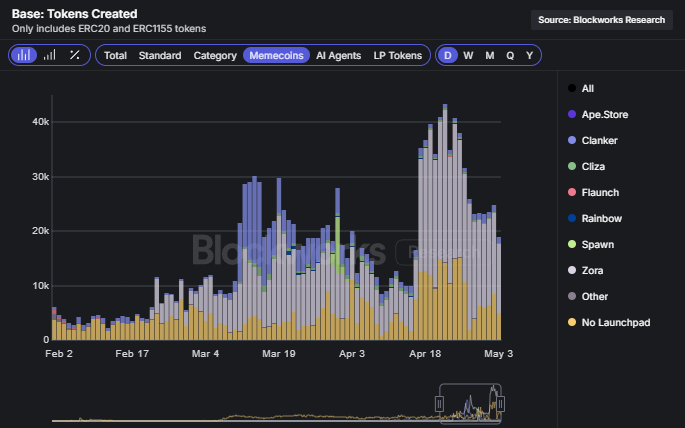Outside of Zora, Base launchpads only see 10s-100s of token launches daily.