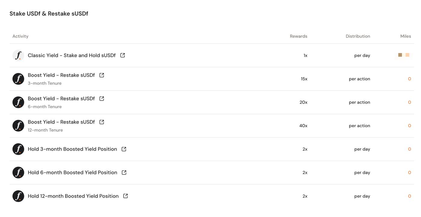 Simultaneously, Falcon Finance officially confirmed the details of its points program (Falcon Miles), where minting, holding, and staking USDf can accumulate points. The point multipliers for various operations are as follows - choosing 3, 6, or 12-month lockups will have corresponding APY increases (up to 19.83%) and point acceleration, which can be selected based on individual risk preferences.