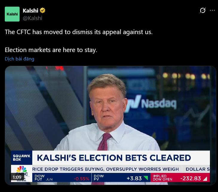 Immediately after, on May 6th, Kalshi posted on X (formerly Twitter): "Election markets will continue to exist" – indicating confidence that election prediction contracts will soon be operational again.