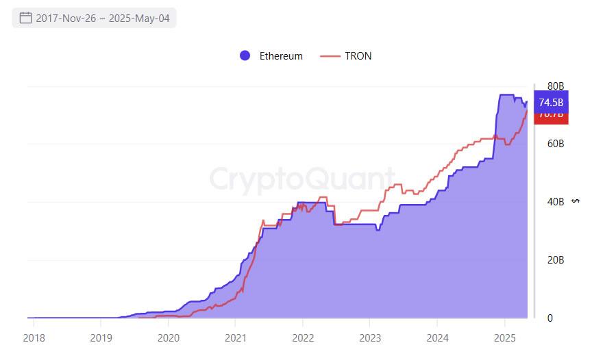 In the past, Tron held a dominant position from July 2022 to November 2024, before being overtaken by Ethereum due to a USDT issuance of 18 billion USD, according to statistics from CryptoQuant. Currently, the third-largest network in USDT volume is Solana, with around 1.9 billion USD in circulation.