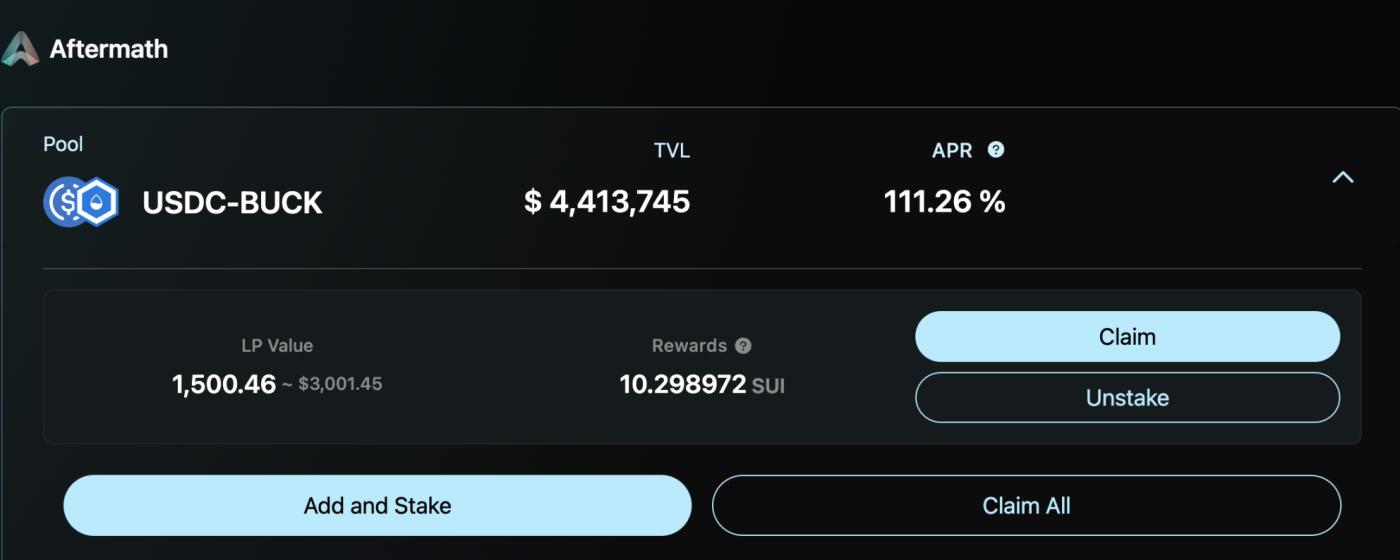 Early interest rates for staking stablecoins in Aftermath were as high as 110%