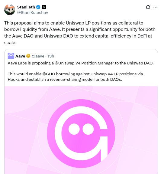 -Interesting proposal re: allowing Uniswap LP positions as collateral on Aave to borrow Aave stablecoin $GHO against, h/t @StaniKulechov: