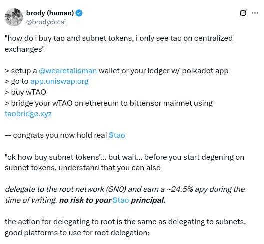 -Good tutorial for getting involved with $TAO/Bittensor, from @brodydotai: