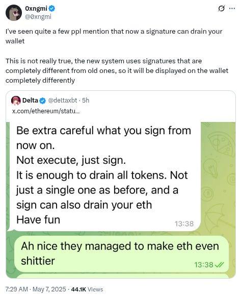-Lots of ongoing debate about the effect of ETH tech changes on security best practices and etc, h/t @0xngmi: