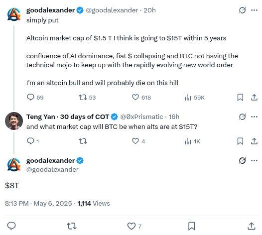 -Are alts set to 10x from here and eventually have twice the market cap of Bitcoin? h/t interesting thoughts from @goodalexander: