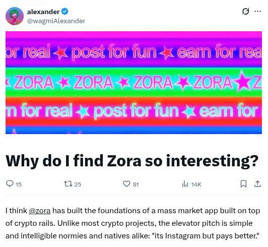 -Zora continuing to generate attention post-TGE, as well as SocialFi in general, h/t interesting article from @wagmiAlexander: