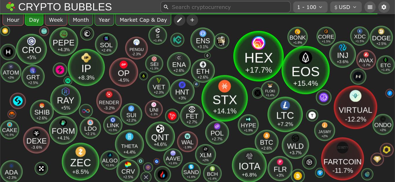 Protocols are also mixed today. Biggest gainer on the weekly among top 50 protocols is Ethereal (#36) at +17.06% and biggest loser is Infrared Finance (#29) at - 25.49%.