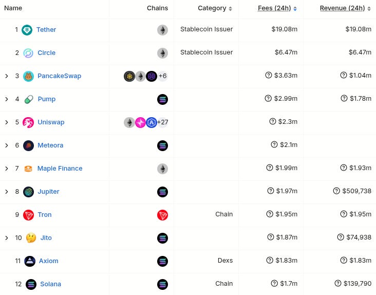 Here’s The Top Entities By 24 Hour Fee Generation (from @DefiLlama):