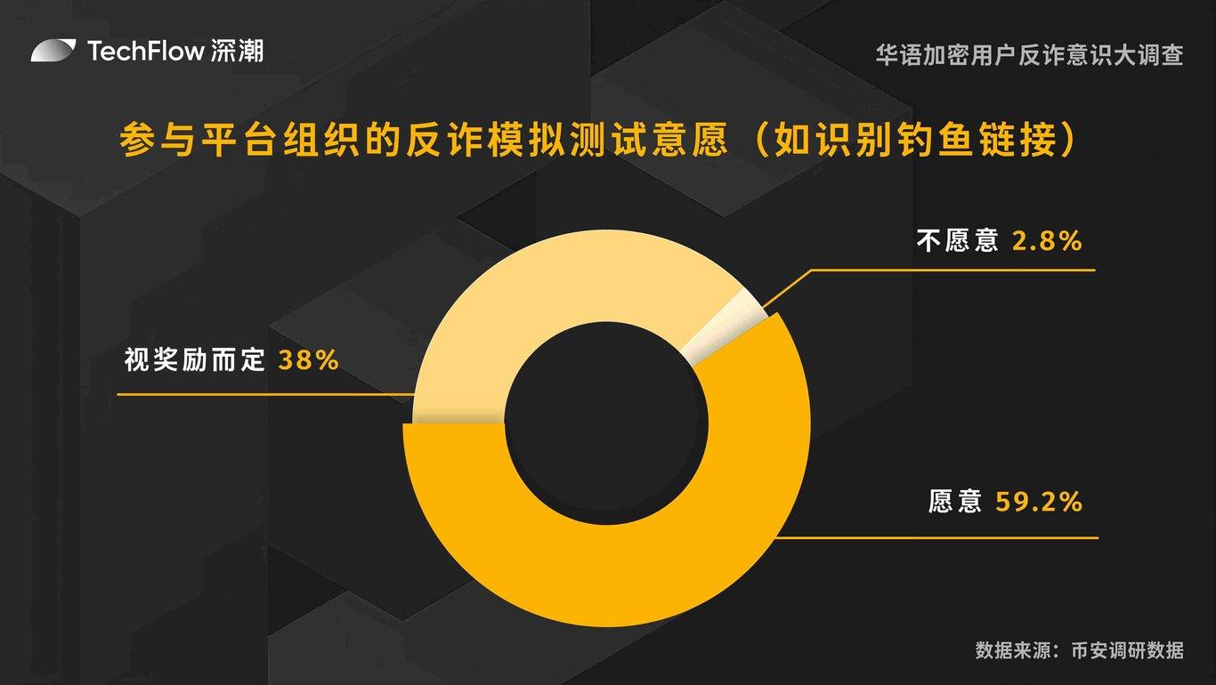 Specifically, 59.2% of users are willing to participate in anti-fraud simulation tests, 38% of users' willingness depends on rewards, and only 2.8% of users are unwilling to participate.