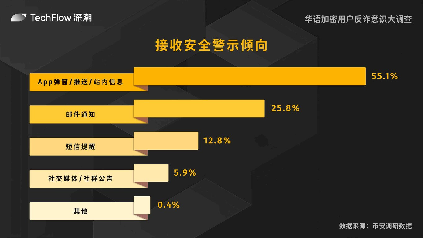 55.1% of users prefer to receive security warnings through app pop-ups, push notifications, or in-site messages. This instant notification method is considered the most effective reminder by most users.