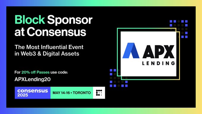 APX Lending is proud to be a Block Sponsor of Consensus 2025. As part of our partnership, you can get 20% off your ticket using code APXLending20 at consensus2025.coindesk.com #apxlending #Consensus2025 #cryptolending @CoinDesk
