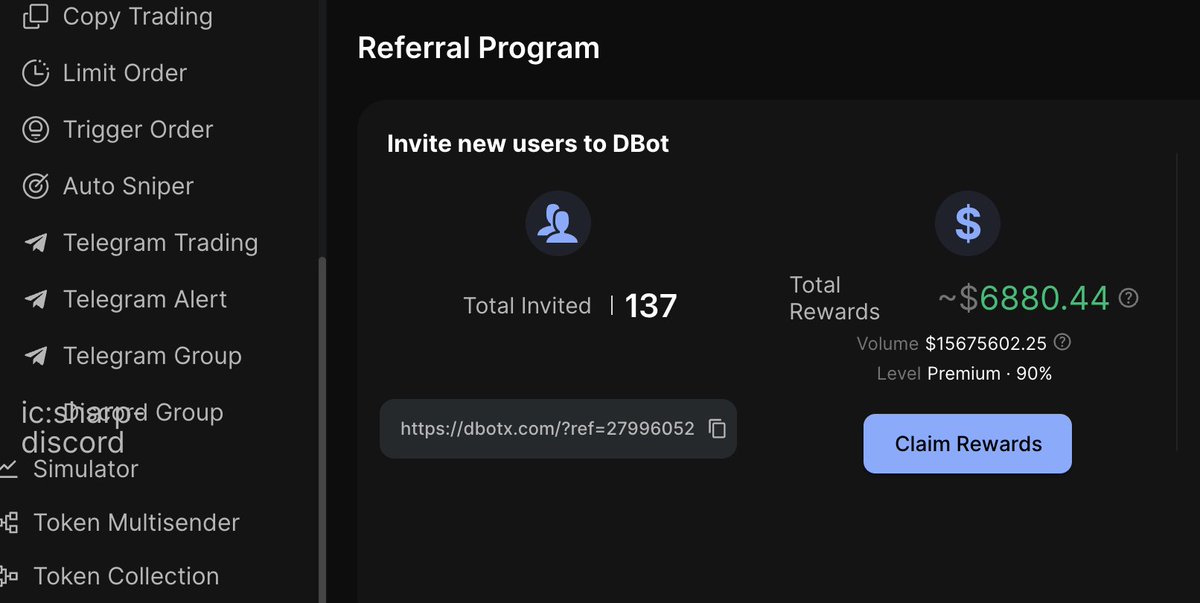 Probably the cheapest one is dbot. All other bots charge a fee based on the amount of single funds. Only dbot charges a monthly fee model. I guess this is why I only invited 137 people, and the transaction volume was 1300