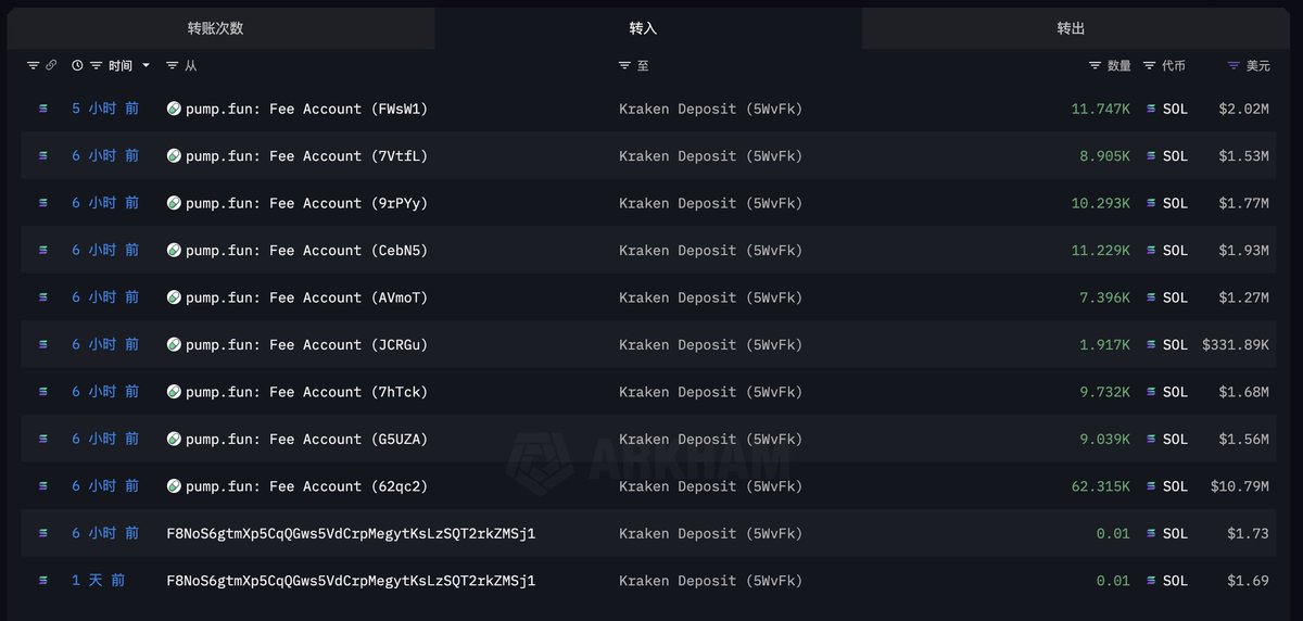 pump.fun transferred 132,000 SOL ($22.88M) in fees to Kraken 6 hours ago. pump.fun transfers these SOL to Kraken after accumulating fees for one to two weeks, and they have sold approximately 3.868 million SOL ($701.76M) over the past year, with an average price of $183.3. Address link🔗👉:intel.arkm.com/explorer/addres... This article by