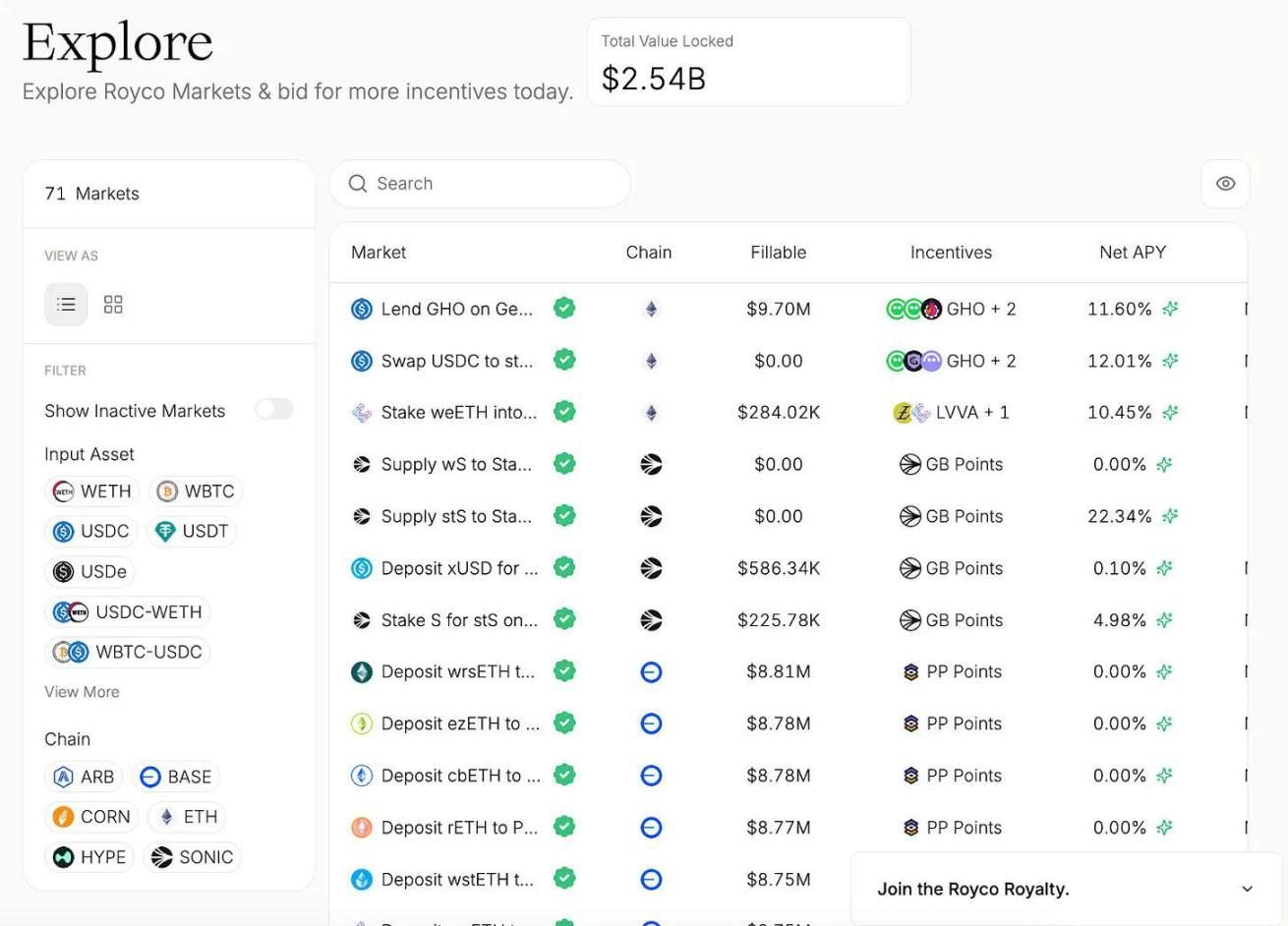 Projects like Royco allow protocols to list liquidity needs, like placing orders in a market, with LPs executing these orders based on expected returns.