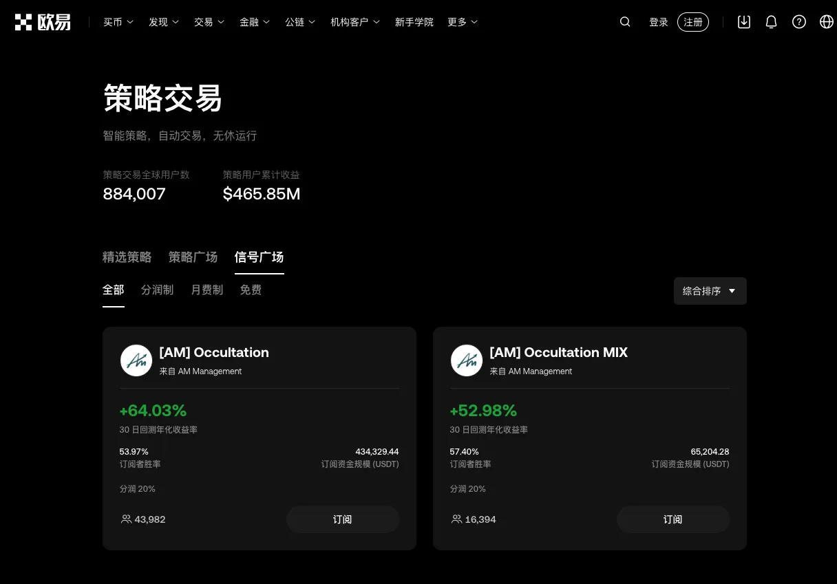 AM Management is an OKX partner, officially providing two quantitative trading strategies for OKX users since November 2023. After about a year and a half, over 60,000 users have subscribed, with AUM reaching $500K.