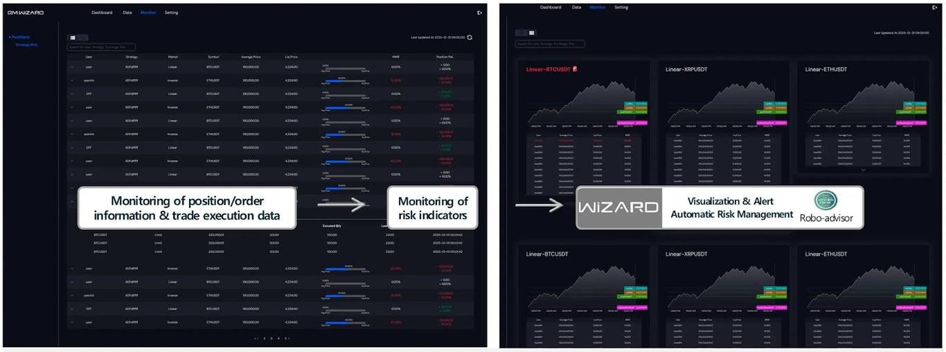 Moreover, AM Management adopts a more conservative system in risk management, assessing forced liquidation risks through visualization tools and setting up warning mechanisms. The core feature of the system is to intuitively present the safety distance ratio between current price and liquidation price through a dashboard, while deeply managing risks using the MMR indicator based on margin ratio. AM Management has successfully passed the Robo-Advisor certification by the Korean Financial Supervisory Service (FSC), proving the reliability of its trading algorithm.