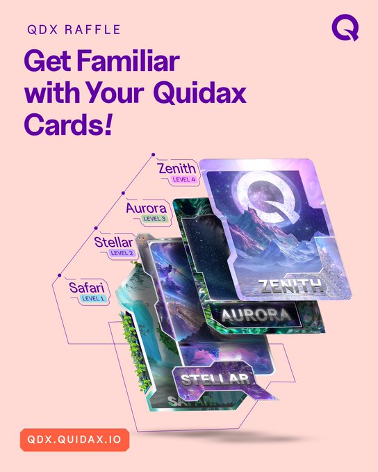 QDX Raffle is a fun Web3 game you’ll soon be able to play on the @BNBCHAIN by locking some of your $QDX 🔒 It will be played using NFTs called Quidax Cards. Ready to get familiar with your Quidax cards?👇 [THREAD BELOW]