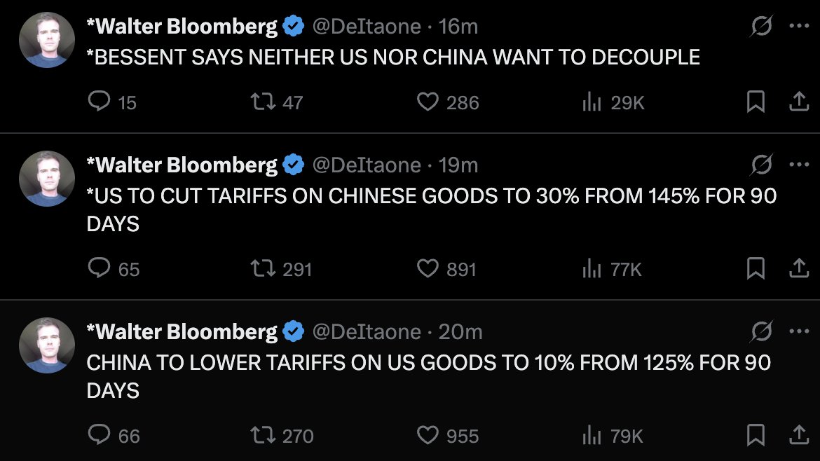 There we go, we got what the market was looking for. The 90 day timeframe is interesting here and sets us up for more headlines over the next few months. These could obviously be good or bad. Also explains why Trump said to buy stocks before the weekend. Stocks up big, $BTC &