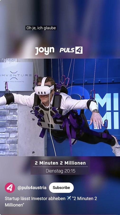 🚀 Tokenize.it client SimVenture wowed investors on Austria’s “2 Minuten 2 Millionen” with their wingsuit flight simulator! Now you can invest — no Shark status required. Hit the #InvestNow button on their site. simventure.at/#investnow #TokenizeIt #SimVenture #VR