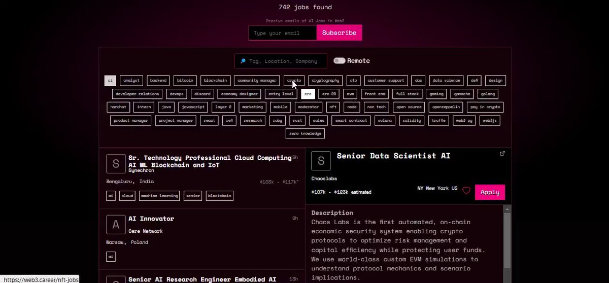 Currently, @Web3Career offers 59,344 blockchain jobs in 7,151 projects.