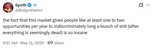 -The Nasdaq 100 is up almost 25% from the recent lows and many alts are up over 100%, as bears once again missed the chance to long the bottom, h/t sentiments from @0xSynthesis1: