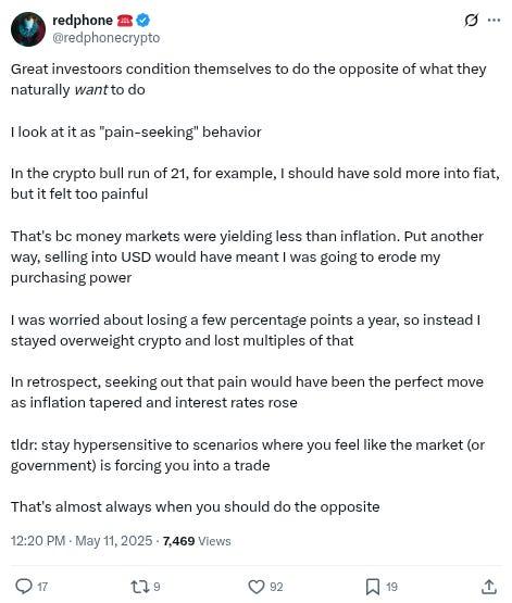 -“Great investoors conditions themselves to do the opposite of what they naturally want to do” - trading wisdom from @redphonecrypto: