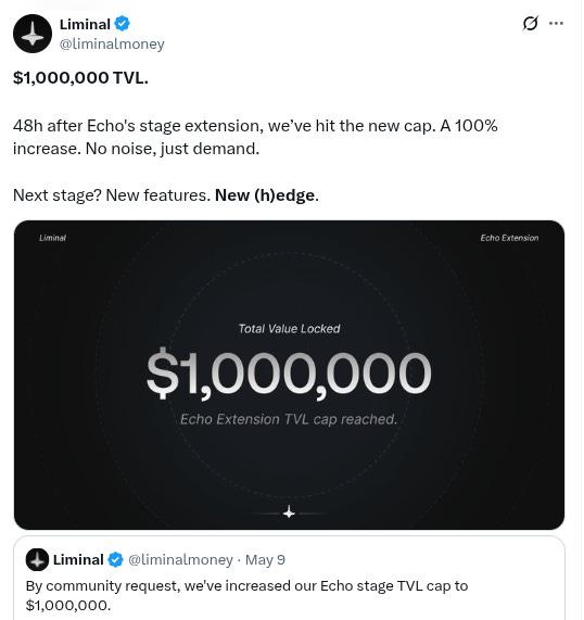 -New project called @liminalmoney. Twitter bio states “Yield beyond the (h)edge. Only possible on @HyperLiquidX”. Followed by 23 of our mutuals. h/t @katexbt: