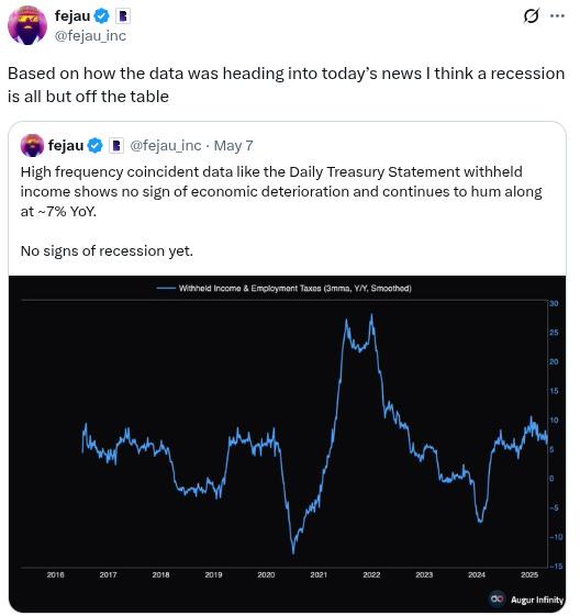 -Possibility of a recession is looking less and less likely, h/t @fejau_inc: