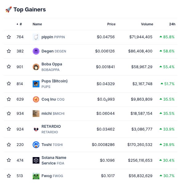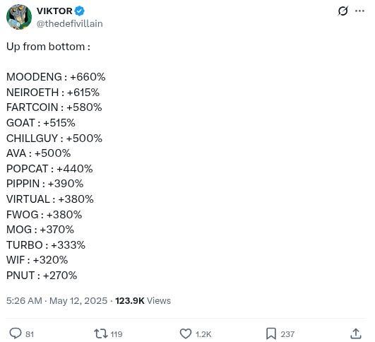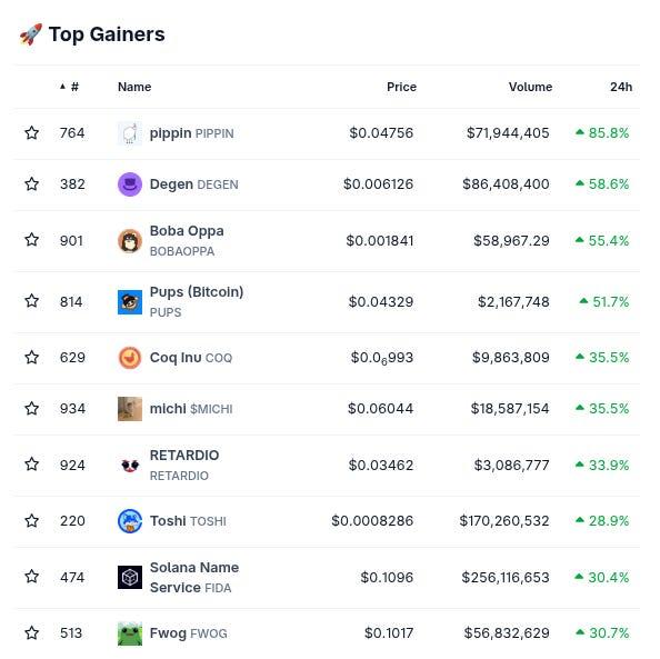 -Lot of memecoins are pumping, also h/t @thedefivillain: