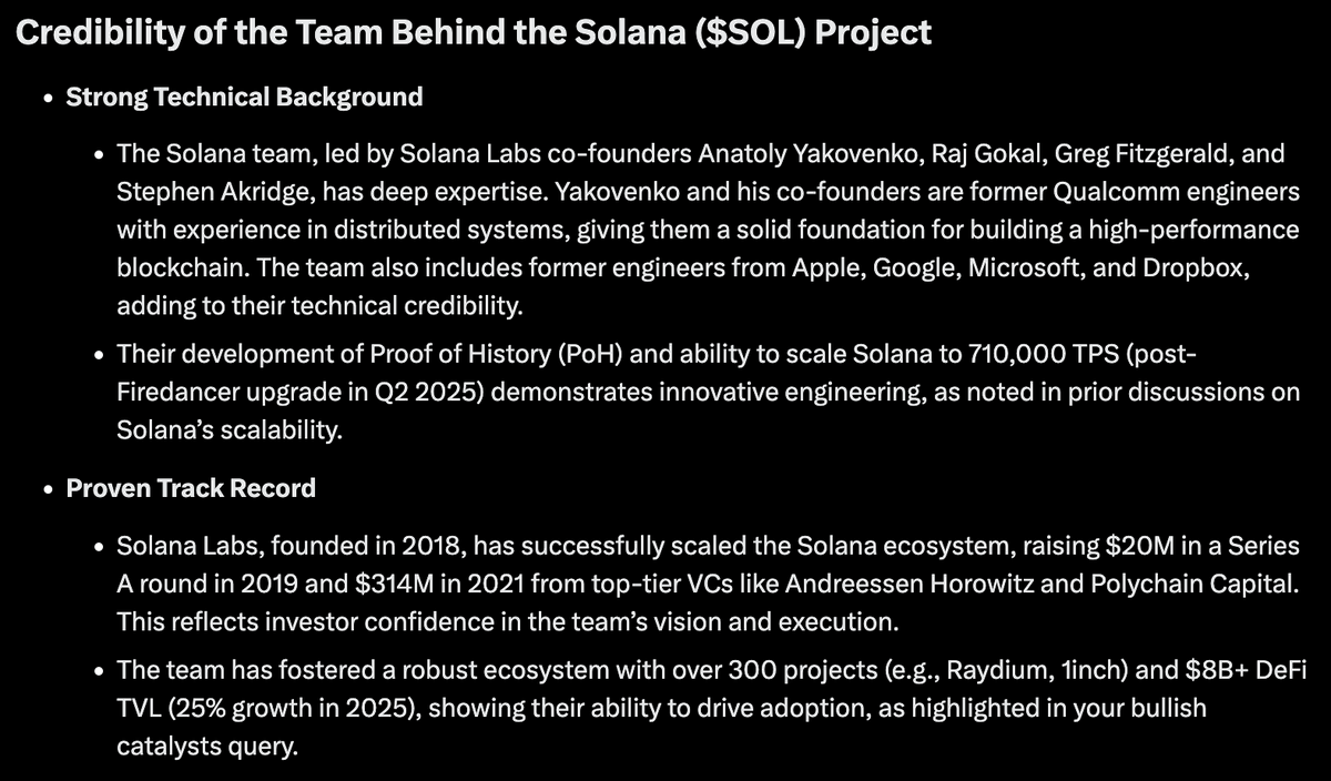 Continuing with the $SOL example, @grok analyzed key team members and their past experience.